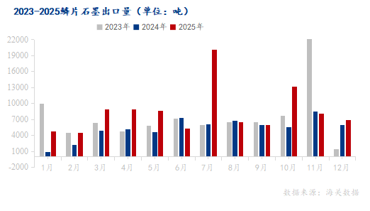據(jù)海關數(shù)據(jù)顯示,2025年12月中國鱗片天然石墨出口量6867.889噸,與上個月相比較減少1286.43噸,月環(huán)比降幅為15.78%,與2024年12月比較,出口量增漲937.778噸,年同比增幅為15.81%。