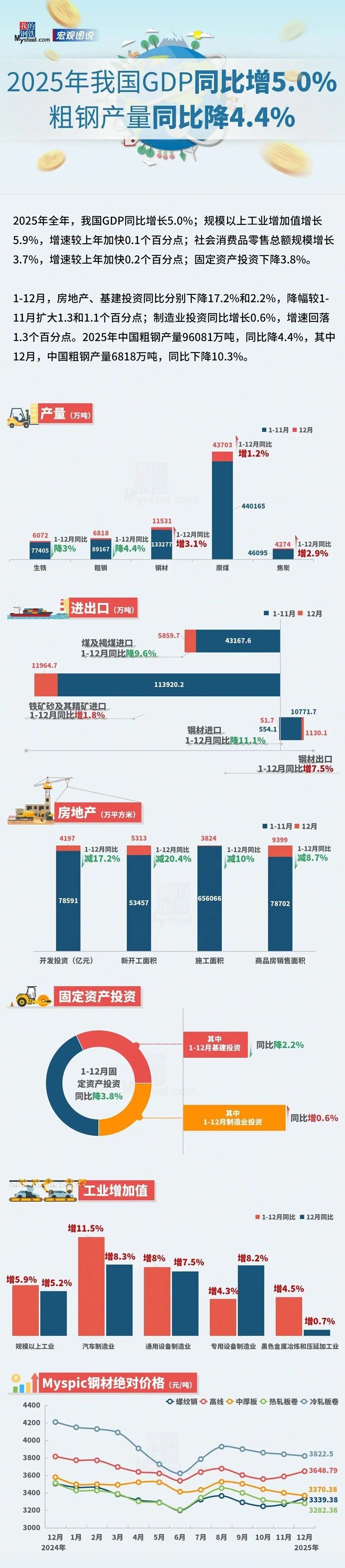 圖說:2025年我國GDP增長5.0%,粗鋼產量下降4.4%