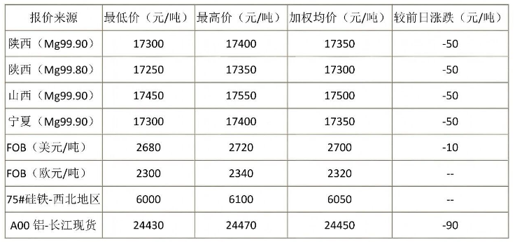 1. 報價原鎂均為符合GB/T 3499-2023《原生鎂錠》標準相應牌號質量要求的鎂錠;